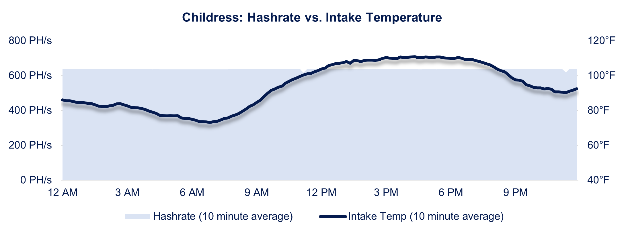 The data center at Childress successfully maintained stable hashrate at intake temperatures of up to ~111°F (~44°C) (see chart below), further validating the Company’s industry-leading proprietary air-cooled data center design.