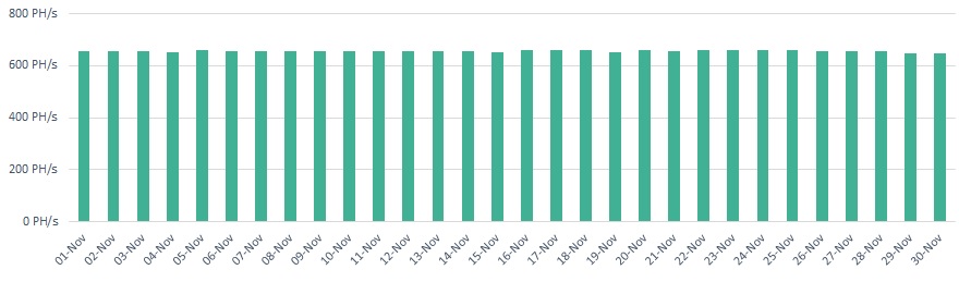 - 657 PH/s average operating hashrate in November, powered by 98% renewable energy